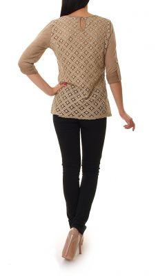 Bawełniana bluzeczka z koronkowymi plecami. Z przodu wyszyta kokardka. Top wykonany z miłego w dotyku materiału. Bluzka z długim rękawem z możliwością podwinięcia.Skład: 65% bawełna, 35% poliester