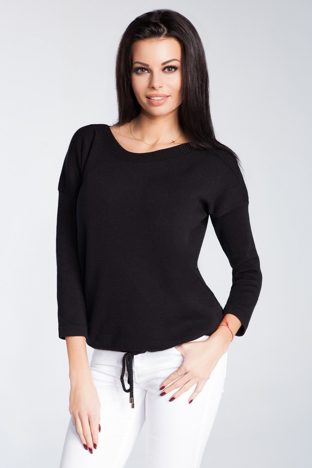 Dzianinowa bluzka z rękawem 3/4. Przy dekolcie wykończona ściągaczem. Dół ściągany troczkiem.