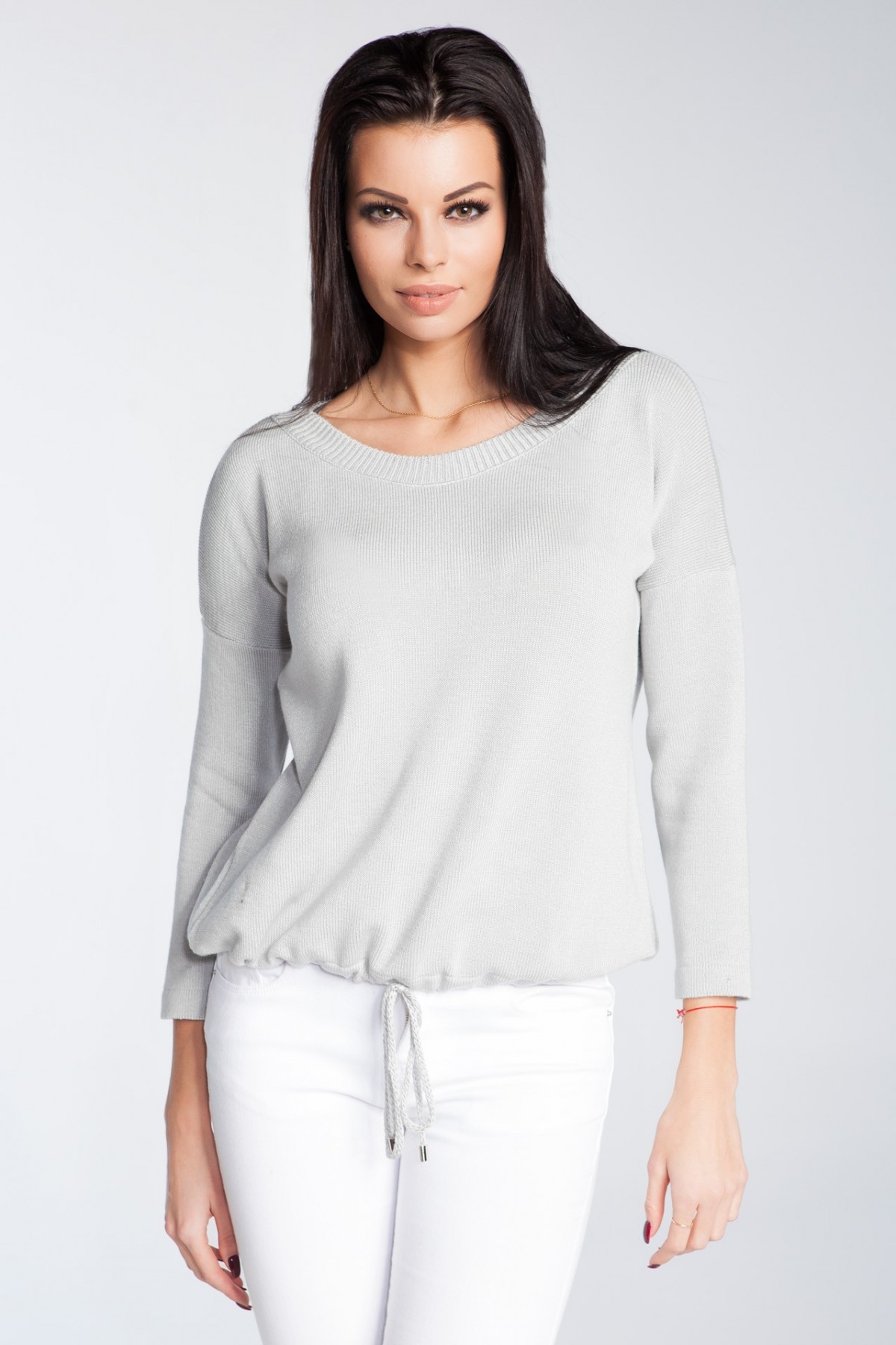 Dzianinowa bluzka z rękawem 3/4. Przy dekolcie wykończona ściągaczem. Dół ściągany troczkiem.