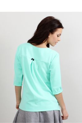 Urocza bluzka damska uszyta z niegniotącego się materiału. Ma długość do bioder, dzięki czemu może być noszona zarówno na zewnątrz jak i wpuszczona w spódnicę lub spodnie. Rękawki 3/4 dodają jej lekkości. Z tyłu bluzka ma kokardkę która podkreśla jej wdzięk. Jest bardzo wygodna i pięknie się układa.