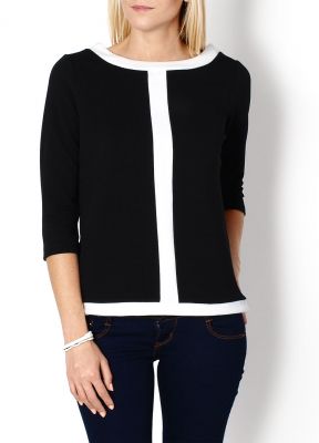 Damska bluzka z materiału o wytłaczanej fakturze. Na plecach rozpinany zamek. Dekolt okrągły z lamówką. Rękawki o długości 3/4. Minimalistyczny fason.Prosty krój z efektownymi plecami, ładnie wykończona.Materiał 95% bawełna, 5% lycraModelka wzrost 175cm, na co dzień nosi rozmiar S/M