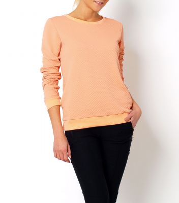 Pikowana bluza, długi rękaw, dekolt okrągły, zamek na plecach, dół bluzy i rękawy zakończone ściągaczem.Materiał 65% bawełna, 35% poliester. Modelka wzrost 175cm, na co dzień nosi S/M, rozmiar z prezentacji produktu S/M