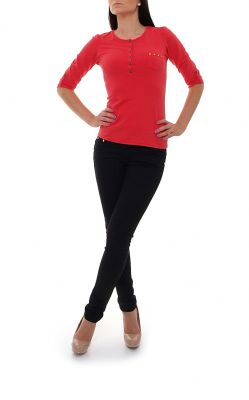 Bawełniana, super komfortowa bluzka / koszulka zapinana na guziki. Kieszonka zdobiona złotymi ćwiekami. Podwijany rękaw 3/4. Wysokiej jakości przyjemny materiał.Skład: 95% bawełna, 5% lycra