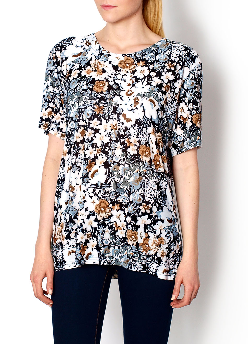 Bluzka, różne wzory, dekolt okrągły, krótki rękaw, klasyczny fason, po bokach delikatne rozcięcia.Materiał 65% bawełna, 35% poliesterModelka wzrost 175cm, na co dzień nosi S/M, rozmiar z prezentacji produktu L