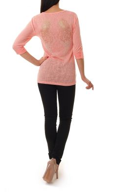Bawełniana bluzeczka zdobiona złotymi cekinami z motywem skrzydeł na plecach. Koszulka z długim rękawem, z możliwością podwinięcia na 3/4. Wykonana z miękkiego i przyjemnego w dotyku materiału.Skład: 80% bawełna, 20% poliester