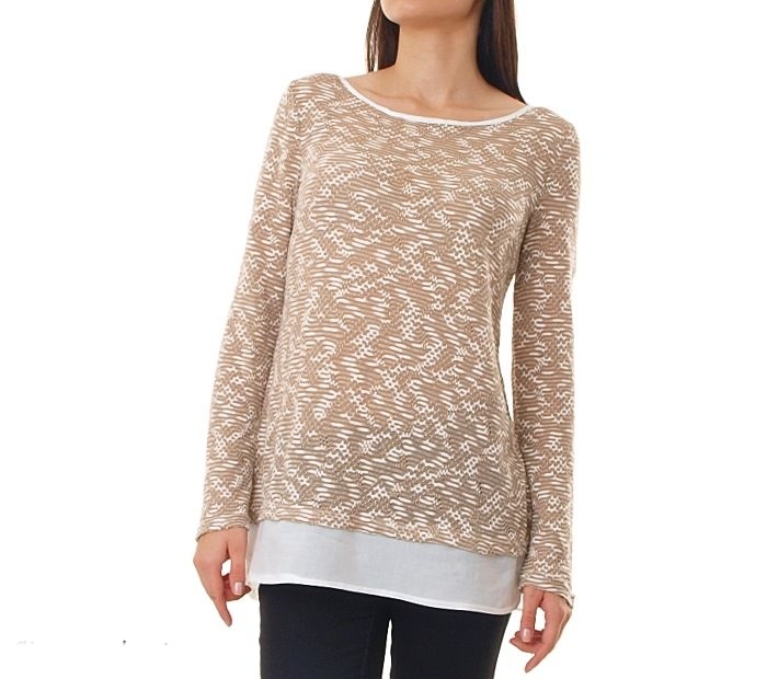 Bawełniana bluzka z wszytą dolną częścią koszuli z guzikami. Miękka struktura swetra w modnej stylizacji. Możliwość podwinięcia rękawa do długości 3/4.Skład: 65% bawełna, 35% poliester