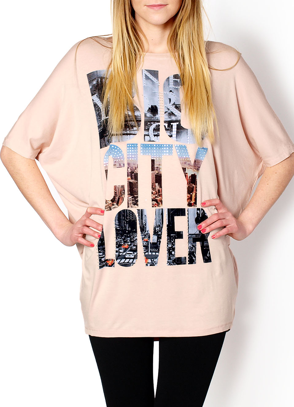 Luźna bluzka z kolorowanym nadrukiem. Krój kimona, dekolt okrągły. Materiał: 95% wiskoza, 5% elastan.Modelka: wzrost 175 cm.