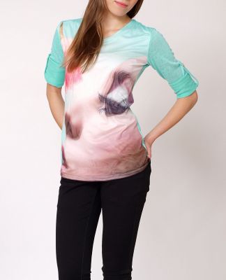 Oryginalna bluzka z nadrukiem, z efektem 3D. Bluzka z długim rękawem. Z przodu modna aplikacja obszyta siateczką, która daje niepowtarzalny, trójwymiarowy efekt. Plecy i rękawy gładkie, wykonane z przyjemnego, bawełnianego materiału. Istnieje możliwość podpięcia rękawków do długości 3/4. Bardzo wygodna i komfortowa, a przede wszystkim niezwykle efektowna tunika.Skład: 100% poliester.