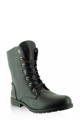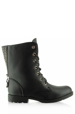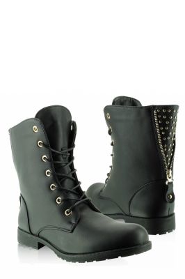 Klasyczne, sznurowane botki worker. Mają solidną podeszwę na małym protektorze. Tylna część cholewki ozdabiana złotym suwaczkiem i drobnymi ćwiekami. Buty są lekkie i bardzo wygodne. Idealne na co dzień, pasują praktycznie do wszystkiego. W całości ocieplone futerkiem.