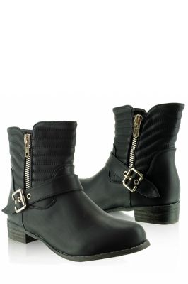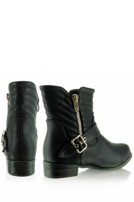 Botki worker o bardzo oryginalnym kroju- cholewka od góry pikowana, ozdabiana złotym suwaczkiem. Przy kostce złota klamerka dodająca nutki elegancji. Buty są bardzo wygodne, idealne na co dzień. Po wewnętrznej stronie posiadają suwaczek ułatwiający zakładanie.