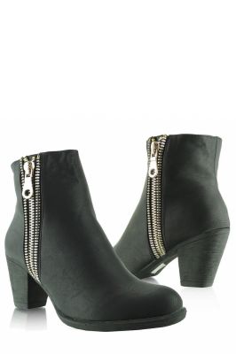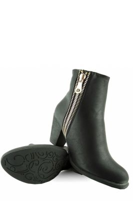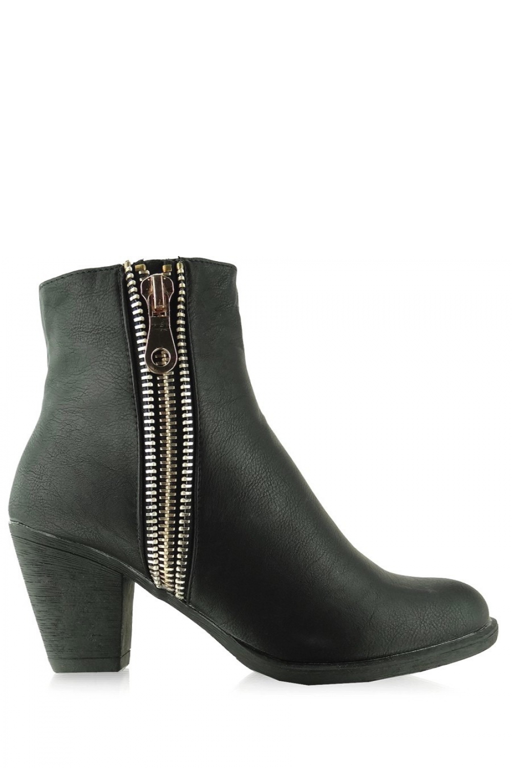 Klasyczne botki damskie na szerokim, stabilnym obcasie. Mają ozdobny suwak po zewnętrznej stronie w kolorze złotym. Są bardzo wygodne i praktyczne. Ich uniwersalny krój sprawia , że pasują praktycznie do wszystkiego. Po wewnętrznej stronie posiadają suwaczek ułatwiający zakładanie.