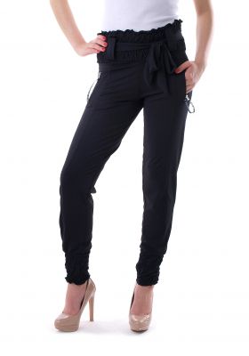 Seksowne haremki / bryczesy zakończone wysokim rozciągliwym pasem. Pas wiązany tasiemką. Z przodu kieszenie. Nogawki zakończone ściągaczami. Skład: 65% bawełna, 35% poliester, 5 elastan