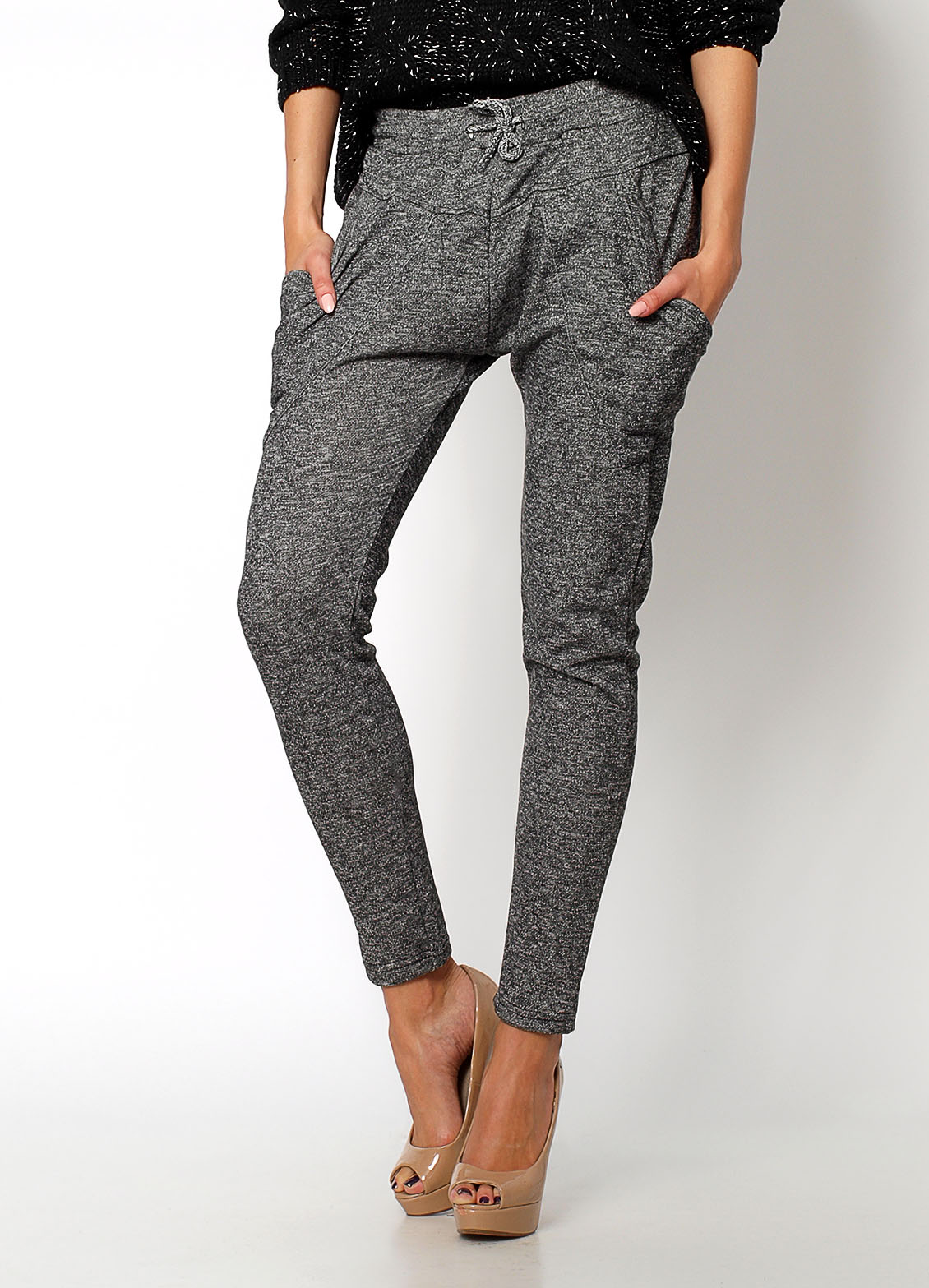 Dresowe spodnie, typ baggy, obniżony krok, po bokach głębokie kieszenie, nogawka zwężana, w pasie gumka i sznurek do regulacji, z tyłu imitacje kieszenie.Materiał 85% bawełna, 10% poliester, 5% elastan.Modelka wzrost 172cm, na co dzień nosi S/M, rozmiar z prezentacji produktu M