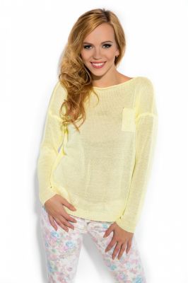 Strona główna/DLA NIEJ/Moda damska/Swetry damskieCienki sweter z kieszonką F145 Żółty