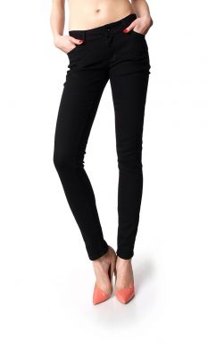 Klasyczne czarne jeansowe spodnie z ozdobnymi czarnymi ćwiekami przy kieszeniach. Zapinane na guzik oraz zamek. Jeansy z kieszeniami z przodu i tyłu. Tylna kieszeń zdobiona delikatnymi czarnymi dżecikami. Bawełniane spodnie typu rurki ze szlufkami w pasie, dzięki czemu możliwa jest stylizacja z paskiem. Zawsze modne.Skład: 95% bawełna, 5% elastan