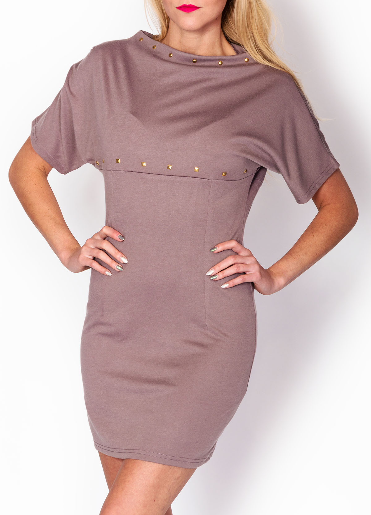 Bawełniana, niezwykle kobieca sukienka z krótkim rękawem. Zdobiona z przodu złotymi ćwiekami. Długość mini/midi. Tunika kimono, wykonana z przyjemnego w dotyku materiału. Świetnie układa się na sylwetce. Ciekawy, bardzo modny krój. Dostępna w pięknych wiosennych kolorach. Materiał 95% bawełna, 5% lycra.Modelka wzrost 175cm, na co dzień nosi rozmiar S/M