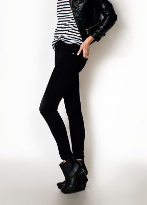 Damskie jeansy rurki. Tradycyjnie zapinane na zamek i guzik. W pasie szlufki. Kieszenie z przodu i na pośladkach. Klasyczna czerń.Czarne spodnie to w damskiej modzie nieśmiertelny klasyk, idealny przez cały rok jako modna baza do wielu stylizacji. Noszone na co dzień, do pracy i różnego typu okazje, ładnie połączą się z obuwiem sportowym jak i wysokimi obcasami. Atrakcyjnie wysmuklają nogi, a klasyczna czerń łatwo da się połączyć z innymi kolorami.Materiał 95% bawełna, 5% elastan.Modelka wzrost 175cm, na co dzień nosi rozmiar S/M