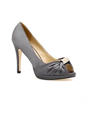 Damskie eleganckie,satynowe czółenka na obcasie typu open toe.Z przodu but jest marszczony oraz ozdobiony efektowną blaszką.Wysoki,stabilny obcas sprawia,że buty będą bardzo wygodne.Czółenka będą idealnie nadawały się do wielu eleganckich stylizacji.