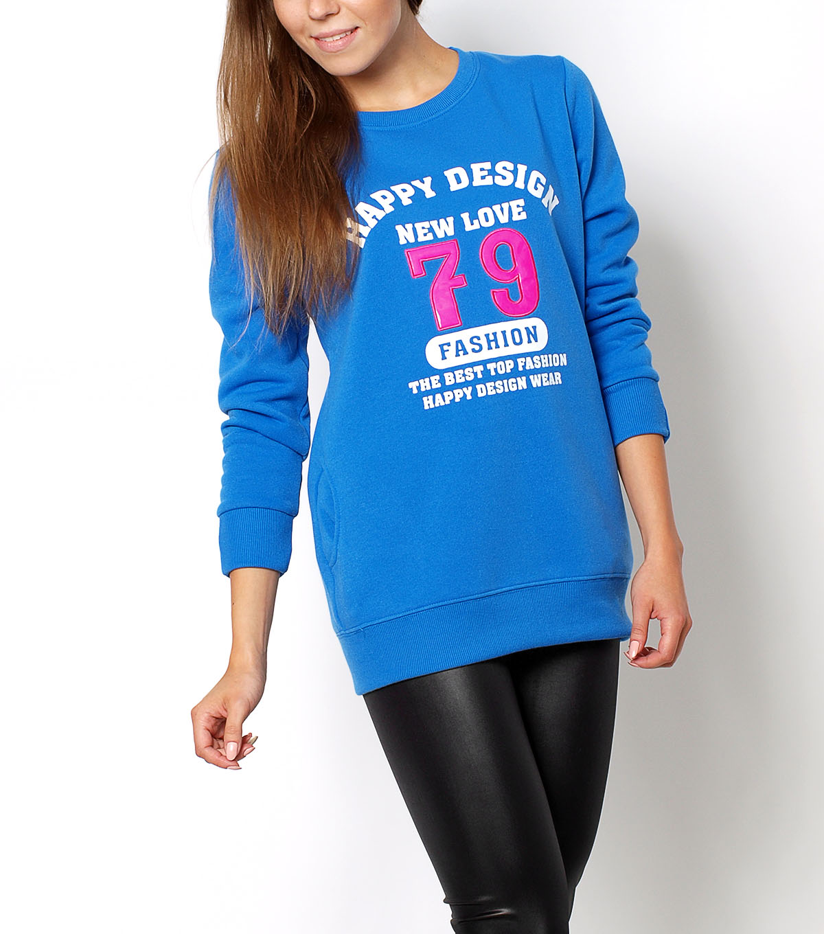 Ocieplana długa bluza dresowe, na dole rękawów i bluzy ściągacze, wewnątrz bluza ocieplana meszkiem, dekolt okrągły, z boku kieszenie, z przodu napis w kontrastowym kolorzeMateriał 65% bawełna, 35% poliesterModelka wzrost 172cm, na co dzień nosi S/M, rozmiar z prezentacji produktu M