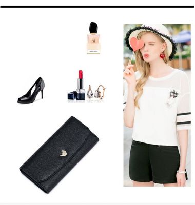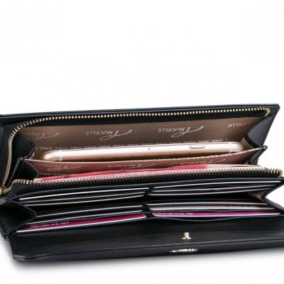 Strona głównaPortfeleDługi damski portfel z bydlęcej skóry Czarny