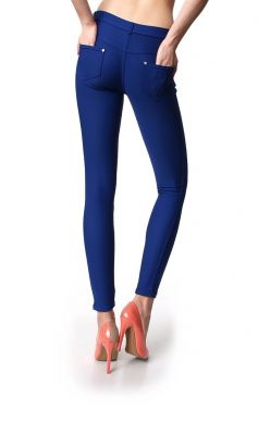 Elastyczne, idealnie dopasowujące się do figury spodnie. Wyszczuplające rurki na gumce. Zapinane na zamek, oraz guzik. Kieszenie z przodu i z tyłu z nitami zdobionymi błyszczącymi cyrkoniami. W pasie szlufki, dzięki czemu możliwa jest stylizacja z paskiem. Wykonane z bardzo miłego w dotyku materiału. Świetnie wysmuklają i podkreślają kształty sylwetki. Dostępne w modnych, intensywnych kolorach.
