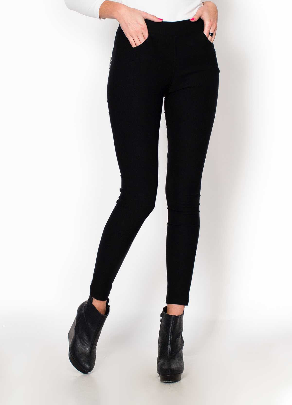 Czarne rurki - dopasowane spodnie. Wysoki stan. Z przodu wsuwane kieszenie. Na pośladkach srebrny ozdobny zameczek. Klasyczny fason z wąską nogawką. Czarne spodnie to w damskiej modzie klasyk. Elastyczne rurki sprawdzą się w każdej sytuacji. Wyszczuplające, z modnym wysokim stanem. Doskonale dopasowują się do ciała, ładnie podkreślają atuty kobiecej sylwetki. Stworzą bazę dla wielu stylizacji. Świetne do codziennych, sportowych zestawień, spiszą się też w eleganckim wydaniu. Materiał 95% bawełna, 5% elastanModelka wzrost 175cm, na co dzień nosi rozmiar S/M