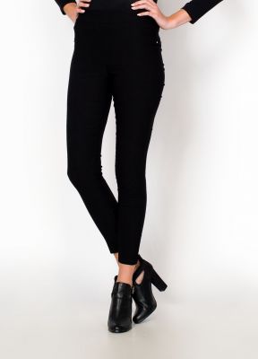 Czarne rurki z wysokim stanem z elastycznego materiału na gumce trzymającej w pasie. Kieszenie na pośladkach, z przodu imitacje kieszeni. Wykończone drobnymi elementami w złotym kolorze. Materiał dobrze dopasowujący się do ciała.Klasyczne czarne, elastyczne rurki, komfortowe zupełnie jak legginsy. Wysoki stan świetnie wydłuża sylwetkę i podkreśla talię i biodra. Modne, efektowne i wygodne, wspaniała baza wielu stylizacji.Materiał 100% bawełnaModelka wzrost 175cm, na co dzień nosi rozmiar S/M