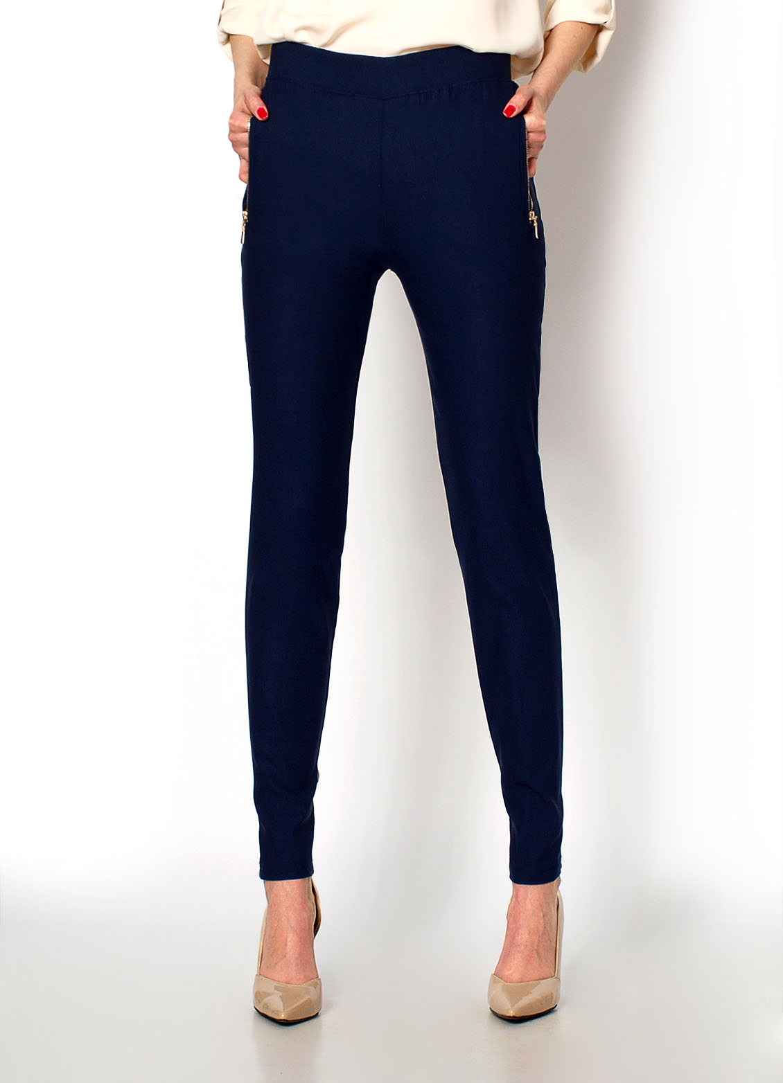 Spodnie, fason rurki, elastyczny materiał, w pasie gumka, z przodu kieszenie na zamek.Materiał 95% bawełna, 5% elastan.Modelka wzrost 175cm, na co dzień nosi S/M, rozmiar z prezentacji produktu XL