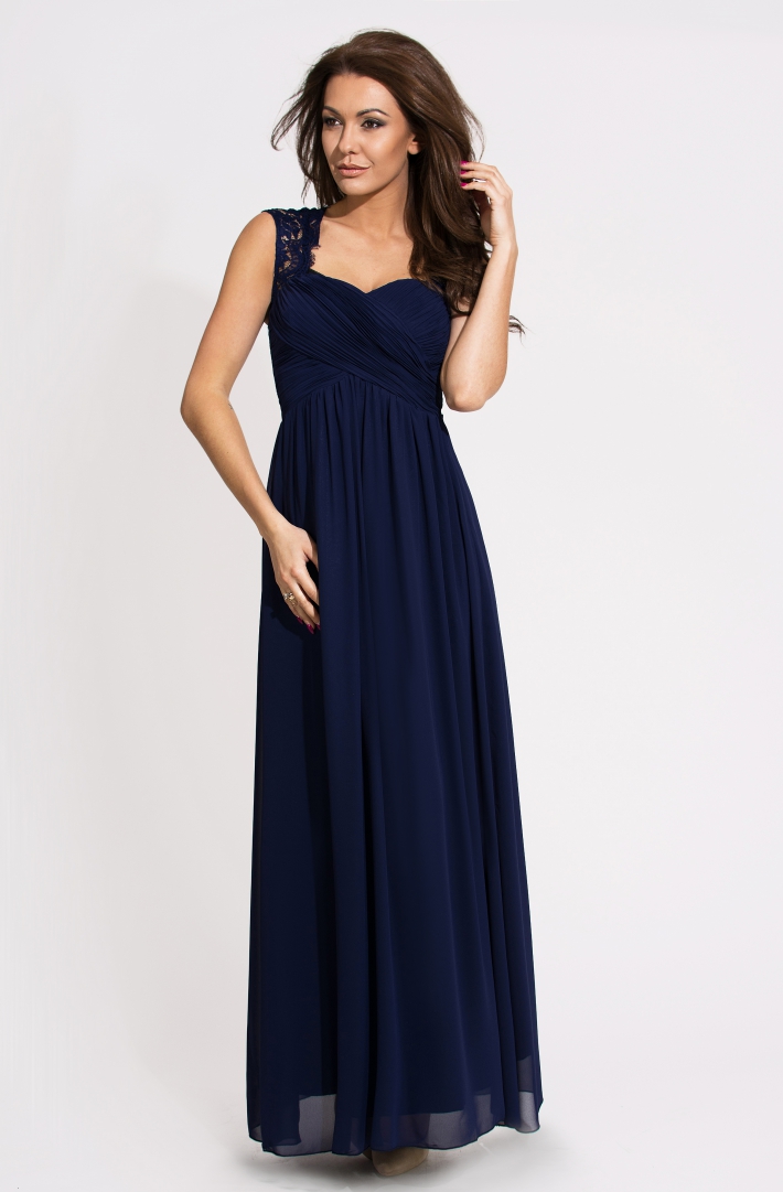 Długa suknia ozdobioną koronką