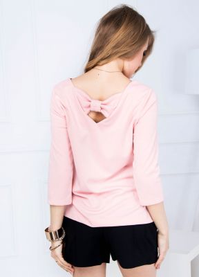Stylowa gładka bluzka damska w minimalistycznym stylu. Wykonana przyjemnego materiału. Okrągły dekolt z przodu i rękawki o długości 3/4. Z tyłu dekolt w kształcie litery V z ozdobną kokardą. W okolicy pach zaszywki. Do wyboru klasyczne kolory. Produkt polski.Praktyczna i elegancka bluzka do wielu stylowych i casualowych zestawień i na wiele okazji. Idealna propozycja na co dzień i na specjalne okazje, by stworzyć modne stylizacje, które będą nie tylko kobiece, ale i odznaczające się elegancją i dobrym gustem. Klasyczne kolory i gładka struktura materiału pozwolą na dobór dodatków do wybranego stylu. Ładnie komponuje się ze spódnicą czy eleganckimi spodniami, pod żakiet czy skórzana kurtkę. Bardzo wygodny i praktyczny model na każdy sezon.Materiał 95% bawełna, 5% lycraModelka wzrost 170cm, na co dzień nosi rozmiar S