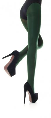 Klasyczne gładkie rajstopy w kolorze zielonym. Z klinem, delikatnie zaznaczoną częścią majteczkową i delikatnym wzmocnieniem na palcach. Bardzo miłe i przyjemne w dotyku, elastyczne rajstopy. Grubość: 150 DENSkład: 92% poliamid, 8% elastan