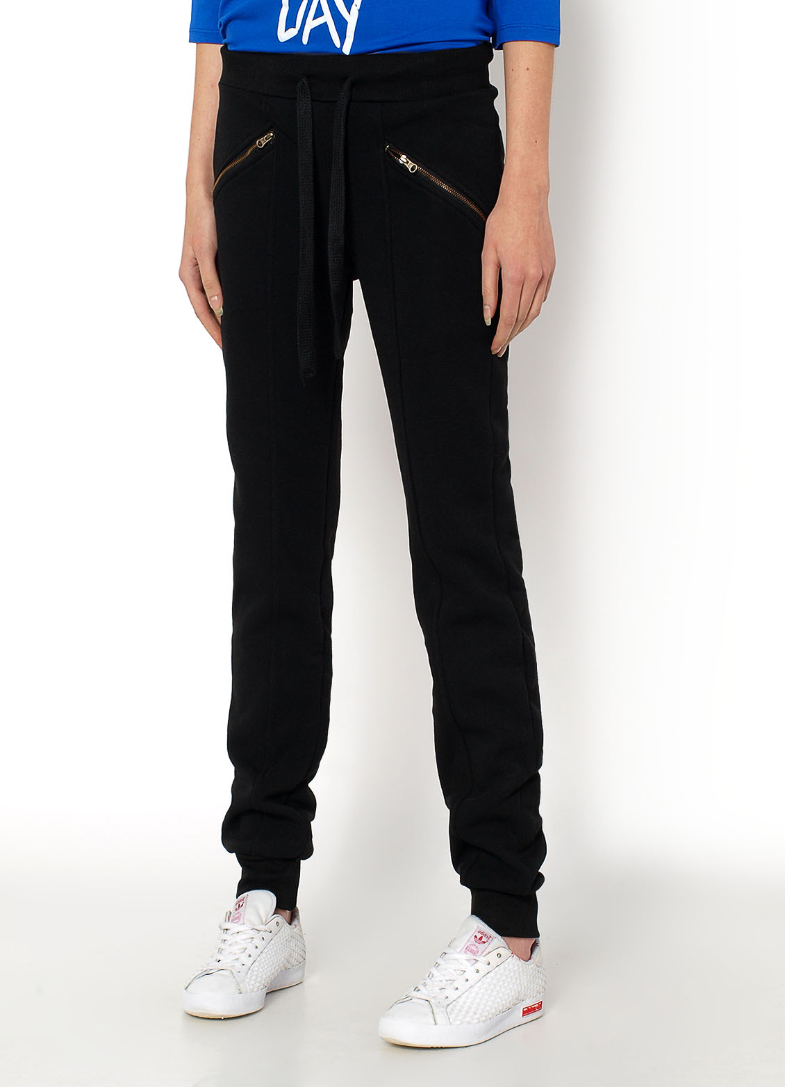 Spodnie dresowe, grube - ocieplane od wewnątrz meszkiem, w pasie gumka i sznurek do regulacji, z przodu kieszenie na zamek, wzdłuż nogawek pionowe przeszycie, na dole nogawek ściągacze. Materiał 65% bawełna, 35% poliesterModelka wzrost 177cm, na co dzień nosi XS, rozmiar z prezentacji produktu S