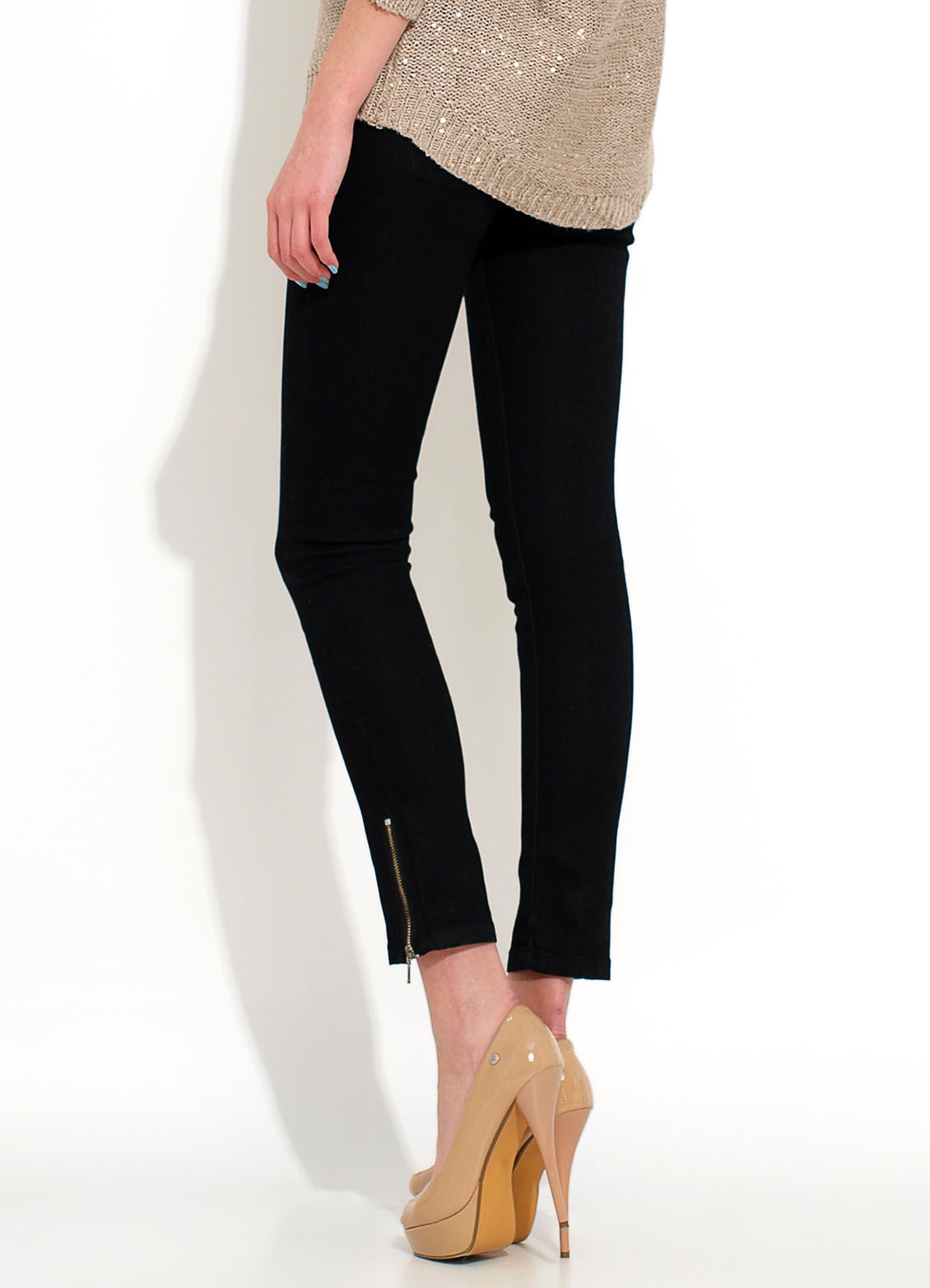 Jeans, fason rurki, po bokach na dole zamki, zapinane na zamek i guziki, posiadają szlufki, kieszenie wsuwane z przodu i z tyłuMateriał 95% bawełna, 5% elastan.Modelka wzrost 175cm, na co dzień nosi S/M, rozmiar z prezentacji produktu 38/M