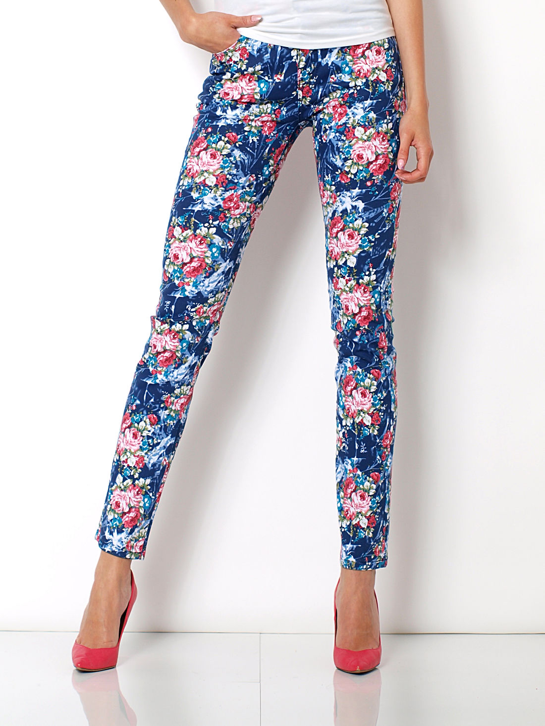Spodnie w kwiaty to jeden z najgorętszych trendów na tegoroczną wiosnę oraz nadchodzące lato. Piękne kwieciste spodnie z prostymi nogawkami, rewelacyjnie prezentują się na sylwetce. Zapinane na zamek oraz guzik. Z przodu i z tyłu kieszenie wykończone nitami. W pasie szlufki. Kolorowy jeans ładnie się układa i dopasowuje do sylwetki. Bardzo kobiecy model, który jest obowiązkową pozycją w szafie pań, które zawsze pragną czuć się trendy.Skład: 95% bawełna, 5% elastan.Wzrost modelki: 172cmModelka ma na sobie: rozmiar z metki 36Na co dzień nosi rozmiar: S/M