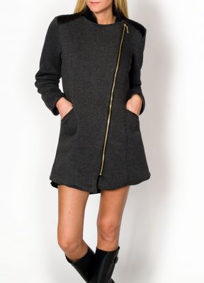 Modny jesienny płaszcz / kardigan z melanżowej tkaniny ze złotym zamkiem. Dodatki z pikowanego materiału imitującego eko skórę. Ocieplany od wewnątrz miękkim polarkiem. Zapinany na zamek. Z przodu duże, funkcjonalne kieszenie. Wysoka stójka, posłuży za efektowny kołnierz, bądź ładnie ułoży się w golf. Do wyboru klasyczne, neutralne koloryMelanżowa dzianina to jeden z efektowniejszych trendów w jesienno-zimowej modzie. Stylowe i komfortowe wykończenie stroju i praktyczny wybór na chłodne miesiące - do codziennych stylizacji i na bardziej formalne okazje.Modelka wzrost 175cm, na co dzień nosi rozmiar S/M