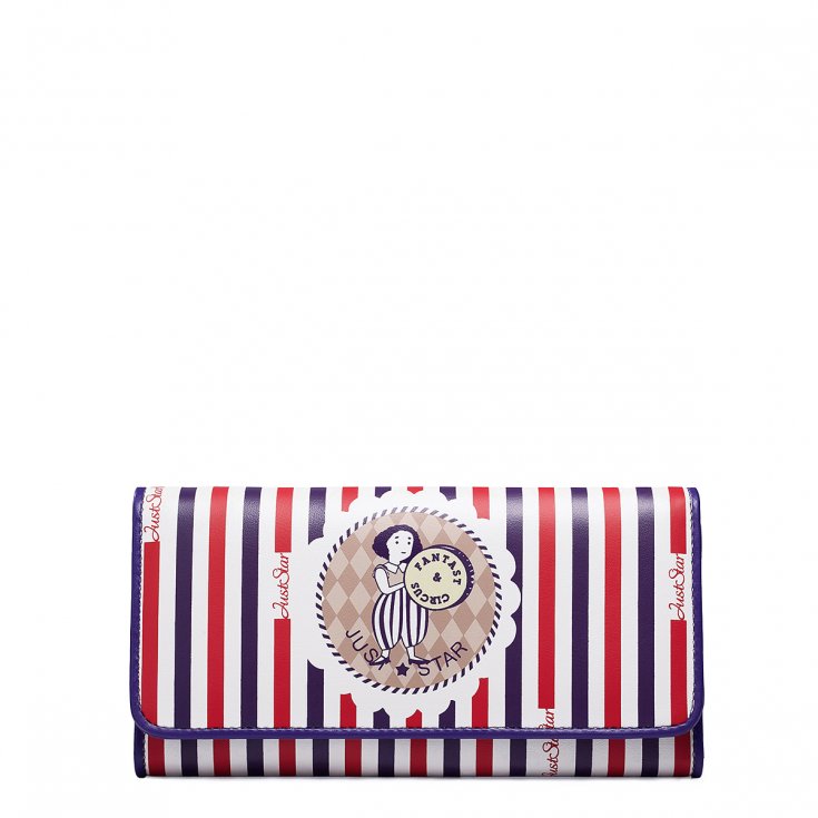 Strona głównaPortfeleJUST STAR długi składany portfel ze skóry z cyrkowym nadrukiem - Purpurowy