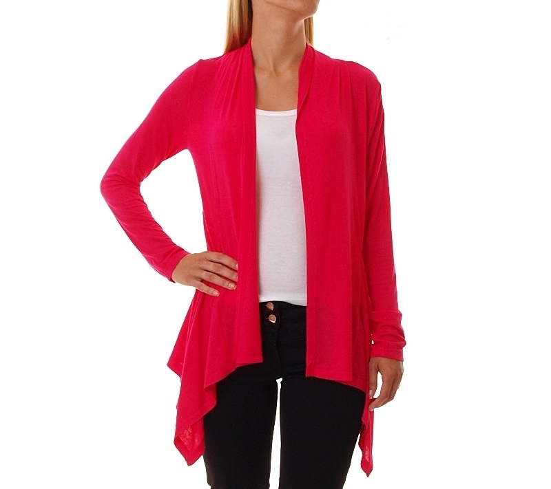 Miękki kardigan z długim rękawem. Przyjemna lekka narzutka idealna na każdą okazję. Asymetryczny sweterek z delikatnie dłuższym przodem.Skład: 95% wiskoza, 5% spandex