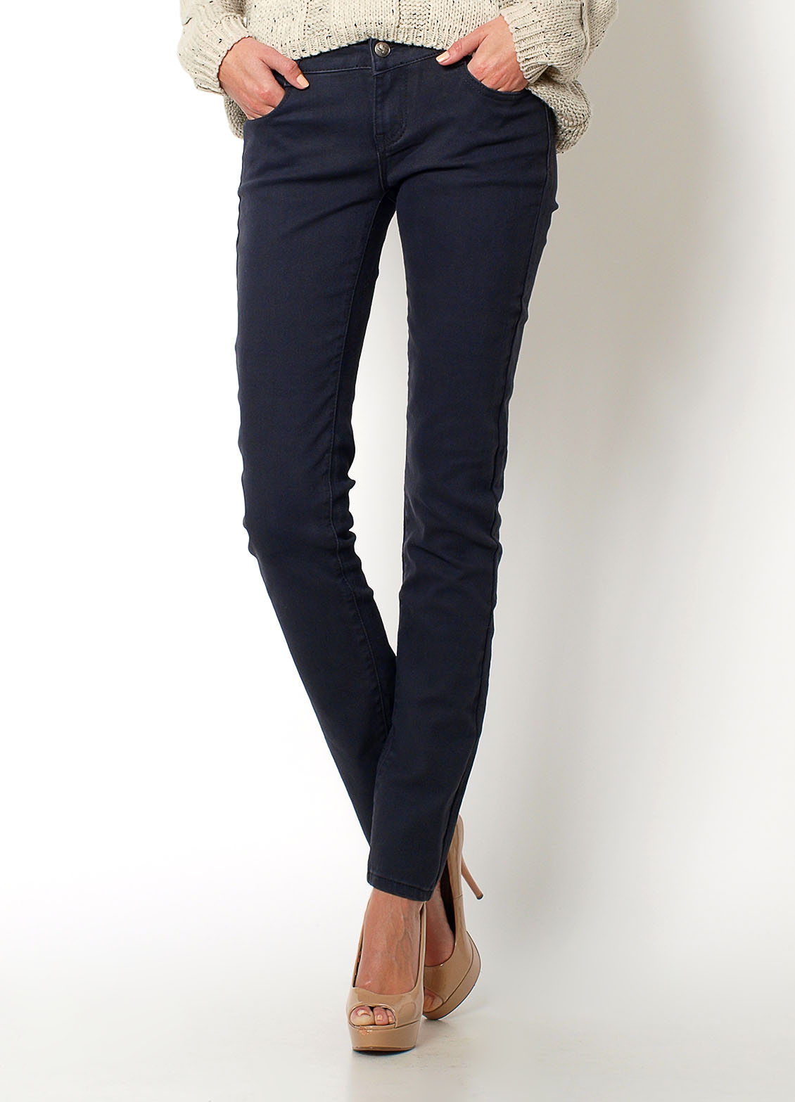 Rurki jeansowe, zapinane na guzik i zamek, kieszenie z przodu i z tyłu wykończone nitami, w pasie szlufki, Materiał 95% bawełna, 5% elastan.Modelka wzrost 175cm, na co dzień nosi S/M, rozmiar z prezentacji produktu M/38.