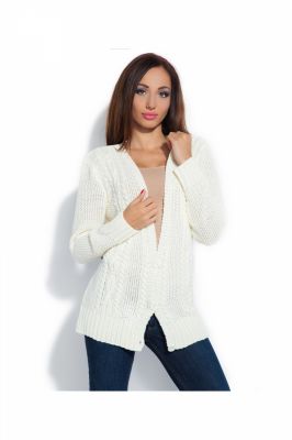Strona główna/DLA NIEJ/Moda damska/Swetry damskie/Swetry Rozpinane, PonczaKlasyczny kardigan F179 Ecru