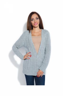 Strona główna/DLA NIEJ/Moda damska/Swetry damskie/Swetry Rozpinane, PonczaKlasyczny kardigan F179 Szary