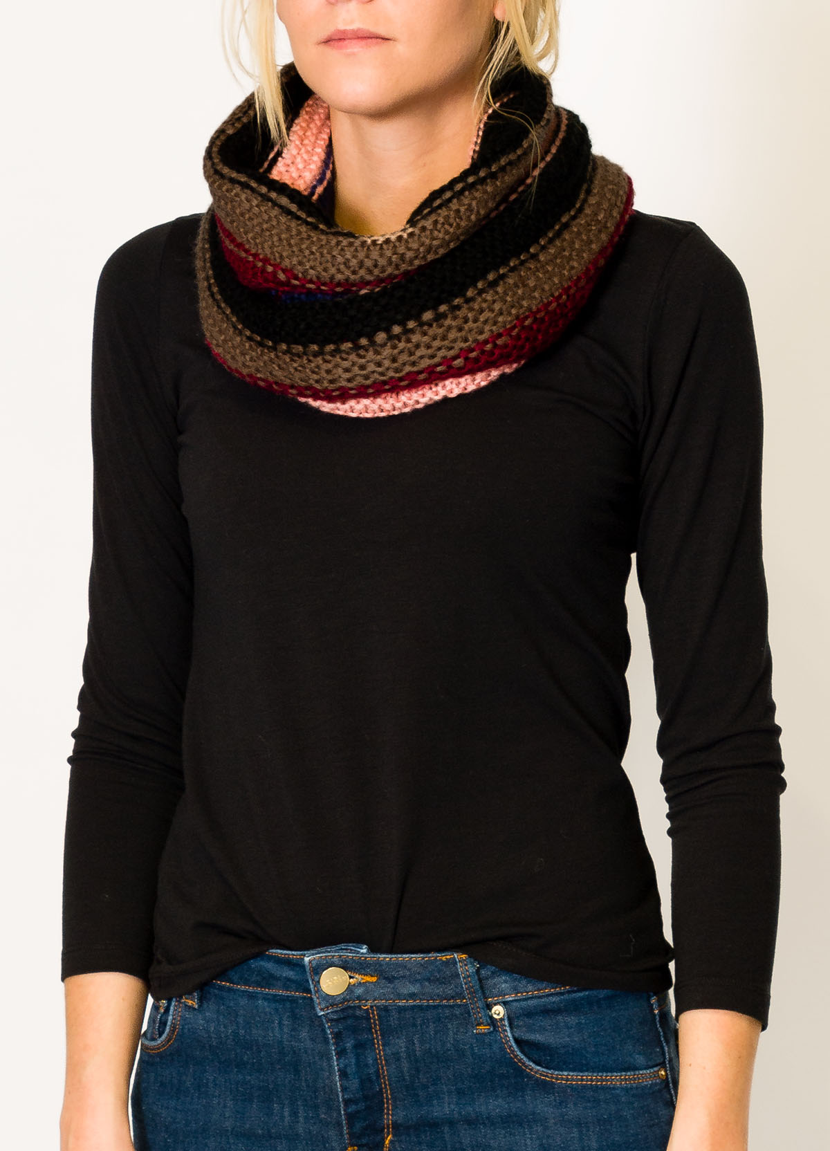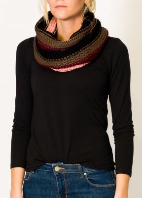 Ciepły komin, kolorowe paski, tuba, wkładany przez głowę. Ciekawe połączenia kolorystyczne do wyboru.Materiał 65% bawełna, 35% akryl (wełna syntetyczna).Wymiary: Obwód: 65cm, po rozciągnięciu ok. 105cm, Wysokość: 60cm