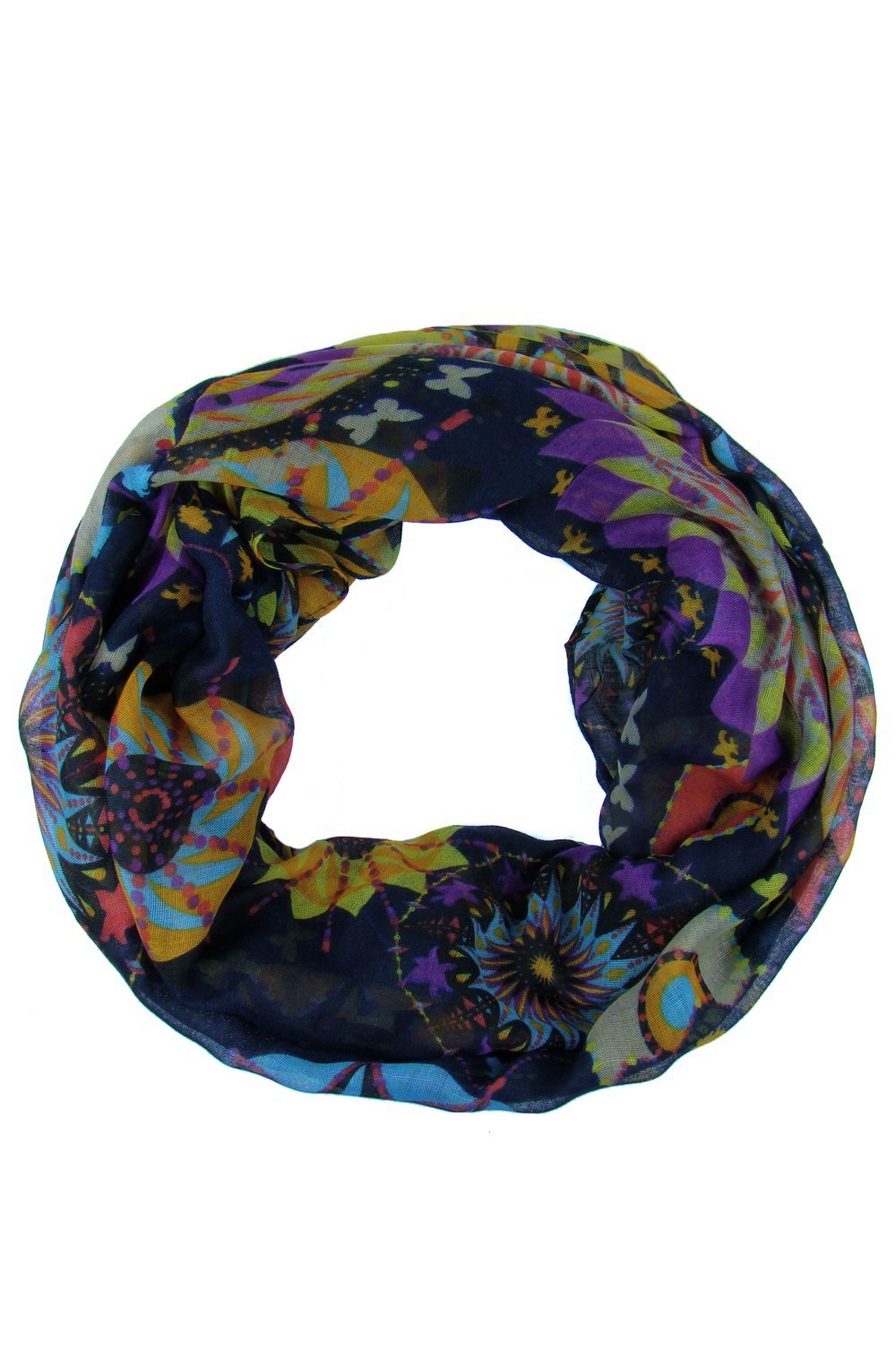 Piękny wiosenny komin z wielokolorowym wzorzystym printem. Jest miękki i szeroki, dzięki czemu świetnie poddaje się układaniu.Wymiary:Szerokość- 92cmCałkowity obwód- 176 cm