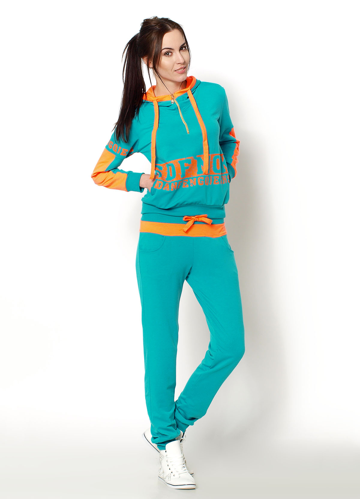 Komplet dresowy, bluza z kapturem, pod dekoltem krótki zamek, wkładana przez głowę, z przodu i na rękawach nadruk w kontrastowym kolorze, w kapturze sznurek do ściągania, rekawy i dół wykończone ściagaczami, po bokach kieszenie; Spodnie, w pasie gumka i sznurek do regulacji, nogawka zakończone ściągaczem, pas ze sznurkiem w kontrastowym kolorze,z przodu wsuwane kieszenieMateriał 65% bawełna, 35% poliesterModelka wzrost 175cm, na co dzień nosi S/M, rozmiar z prezentacji produktu S/M