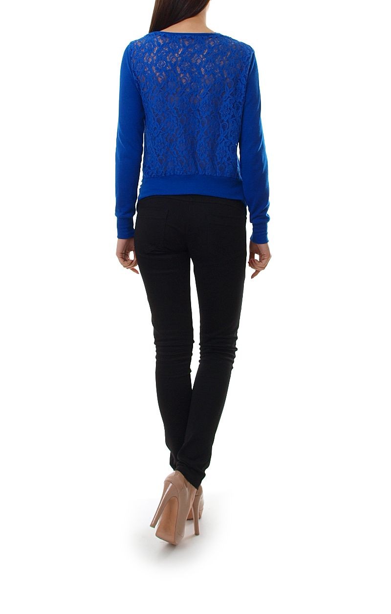 Piękny, elegancki sweterek. Kardigan z delikatną koronką na plecach i ramionach. Rękawy oraz przód gładkie. Przód sweterka dłuższy. Po bokach, przy ściągaczu, delikatne drapowania. Pięknie prezentuje się na sylwetce. Idealny jako narzutka.Skład: 10% wełna, 40% wiskoza, 50% poliester.