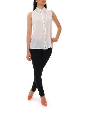 Delikatna, super komfortowa bluzka bez rękawów. Rozpinana, z kołnierzykiem.Zdobiona złotymi butonikami. Koszula jest z tyłu dłuższa. Produkt godny polecenia!
