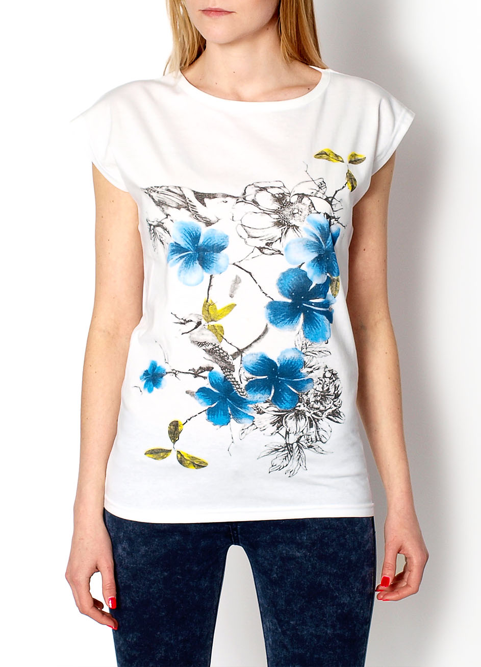 Bluzka z krótkim rękawem wykonana z oddychającej bawełny, okrągły dekolt, nadruk z przodu.Modelka : 175cm, na co dzień nosi S/M, rozmiar z prezentacji produktu S.