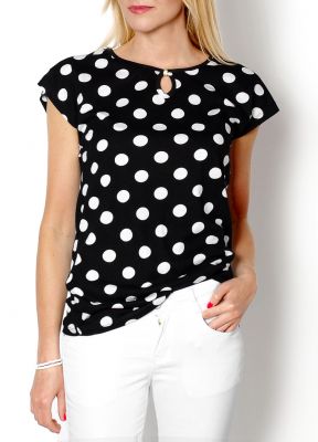 Koszulka z krótkim rękawem, dekolt okrągły z wycięciem w kształcie łezki, luźny krój.Modelka: wzrost 175 cm, na co dzień nosi S/M, rozmiar z prezentacji produktu S.