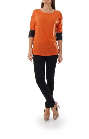 Bawełniana bluzka typu nietoperz, z rękawem 3/4. Luźna bluzeczka z rękawkami zakończonymi wstawka a`la skóra. Na plecach złoty rozpinany zamek. Miękka, przyjemna w dotyku.Skład: 65% bawełna, 35% poliester