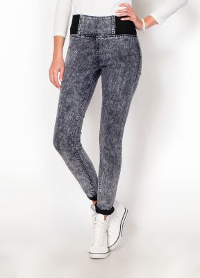 Kobiece marmurkowe spodnie na gumce. Modne rurki, wykonane z jeansu, który dobrze dopasowuje się do ciała. Wyższy stan z szerokim, elastycznym pasem, który wysmukli biodra i brzuch. Dwa kolory do wybory: jeans i grafit.Marmurkowe ubrania to ciekawy trend w modzie damskiej. Spodnie będą dobrym uzupełnieniem wielu stylizacji, zarówno do sportowego, jak i eleganckiego stylu. Idealne na jesienno - zimowa porę.Materiał 95% bawełna, 5% lycra. Modelka wzrost 175cm, na co dzień nosi rozmiar S/M