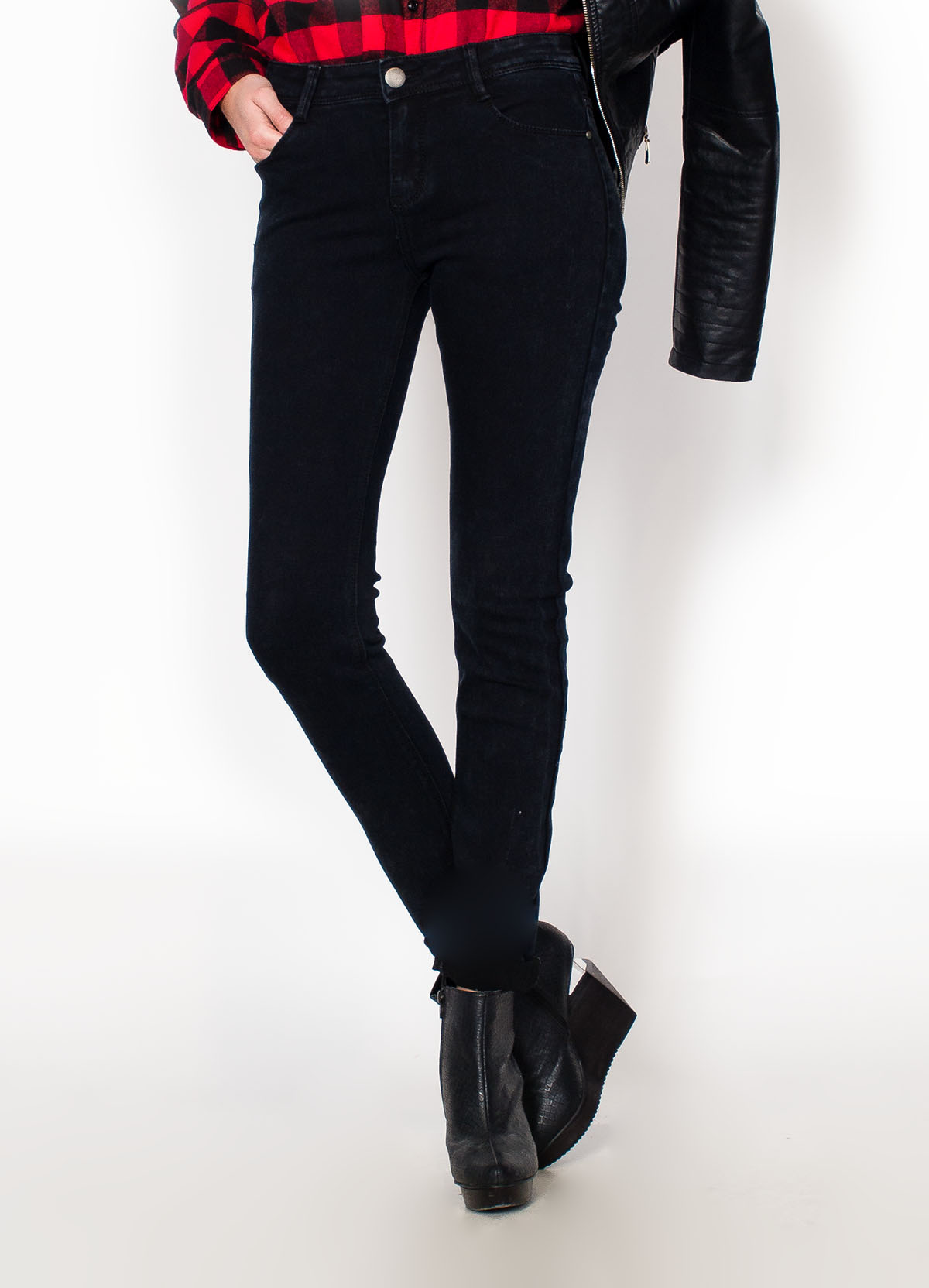 Marmurkowe damskie jeansy z wyższym stanem. Tradycyjnie zapinane na zamek i guzik. W pasie szlufki. Wsuwane kieszenie z przodu i z tyłu, wykończone nitami. Nogawki zwężane - rurki. Wykonane z elastycznego jeansu, który dopasowuje się do ciała. Wysoki stan oraz ciekawy czarny odcień materiału ładnie wysmuklają sylwetkę.Wygoda i wyjątkowy modny styl. Spodnie tego typu są efektowne i świetnie prezentują się na sylwetce. Pasują do każdego stylu - dobrze prezentują się z klasycznymi szpilkami jak i jesiennymi botkami, czy w codziennej wersji, w towarzystwie sportowych butów.Materiał 95% bawełna, 5% elastanModelka wzrost 175cm, na co dzień nosi rozmiar S/M. Rozmiar z prezentacji produktu M.